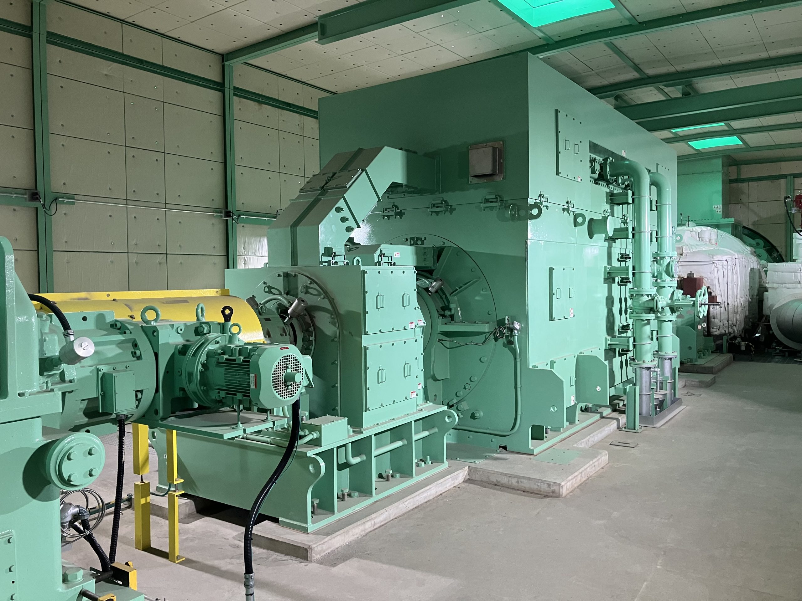ボイラで作った蒸気の圧力でタービンを回転させ、電気をつくります。