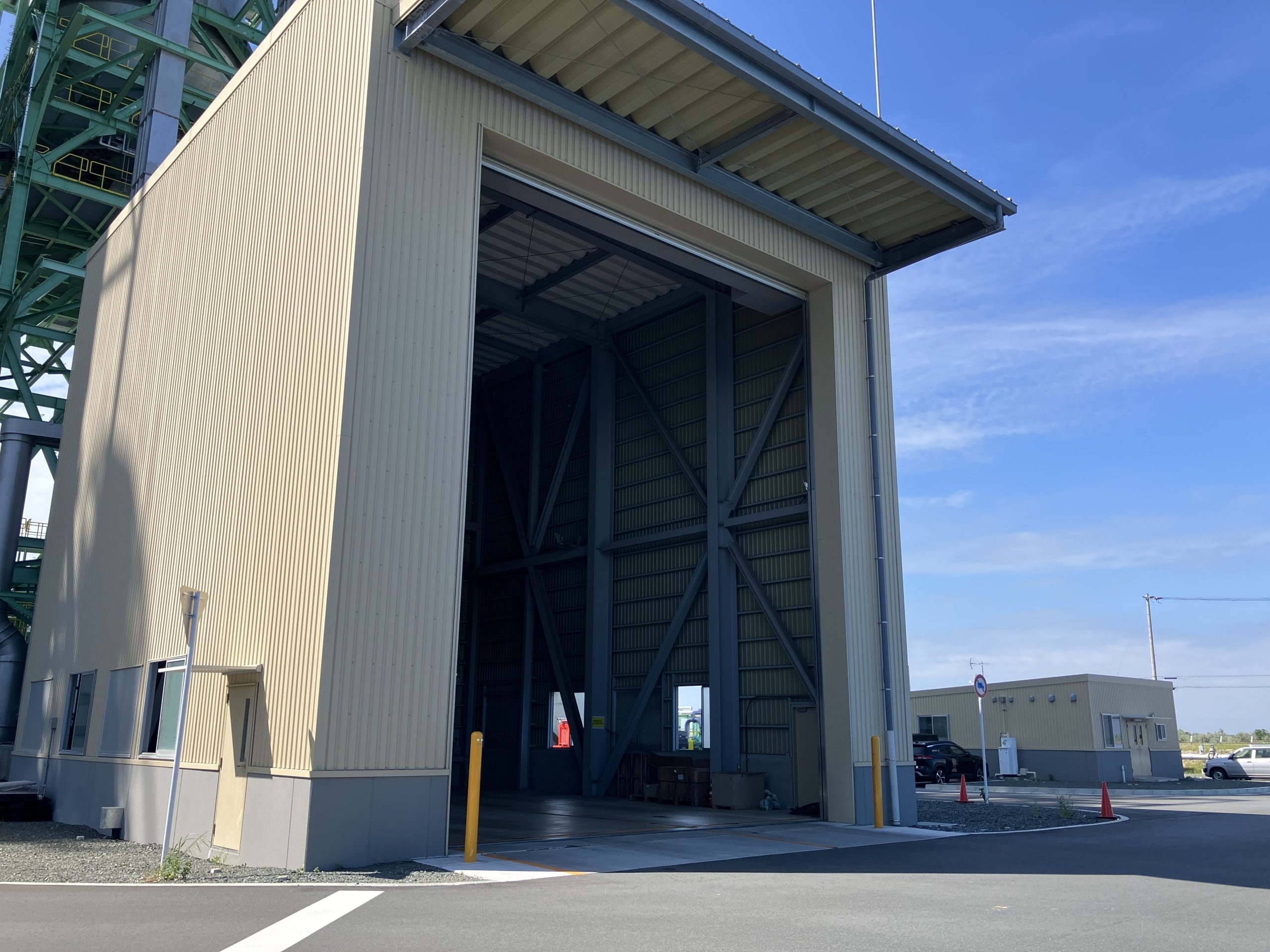 当発電所では、燃料となる木質ペレットをコンテナで保管しています。